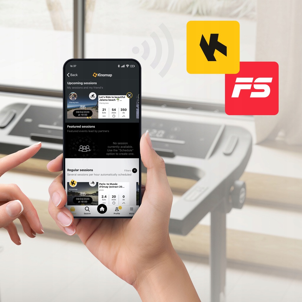 Bieżnia ZIPRO Pacto współpracuje z aplikacją mobilną FitShow, która pozwala na jej bezprzewodową obsługę smartfonem poprzez Bluetooth.