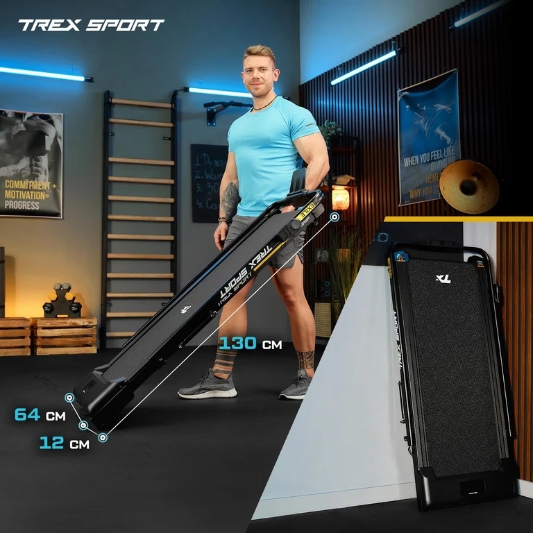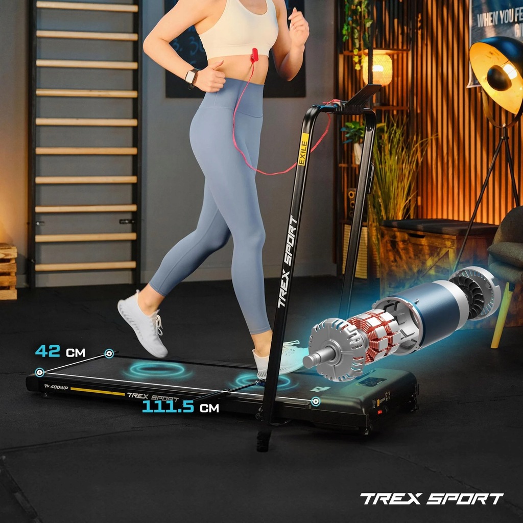 Bieżnia elektryczna składana domowa pod łóżko 1-12 km/h Exile Trex Sport Czy marzysz o tym, by zadbać o swoją formę bez wychodzenia z domu, niezależnie od pogody czy pory dnia? Bieżnia Exile to idealne rozwiązanie dla Ciebie!