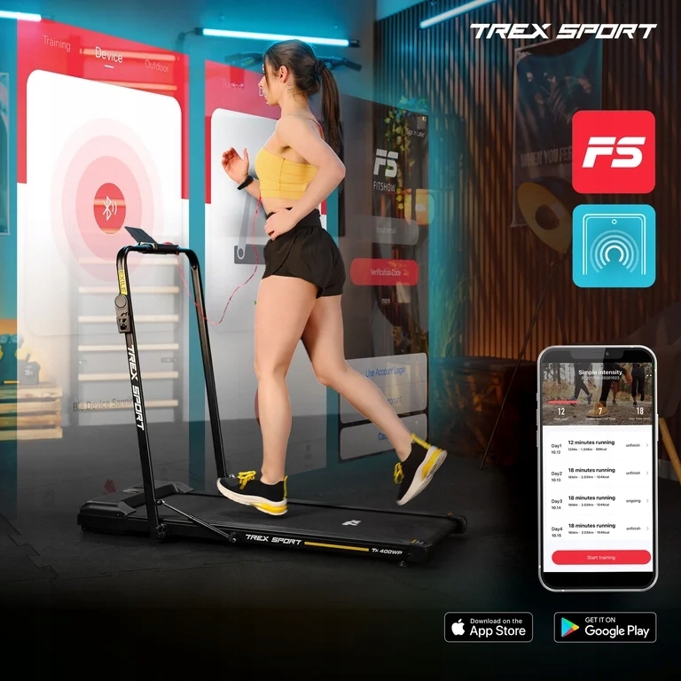 Funkcja Bluetooth oraz możliwość łączenia bieżni z aplikacjami takimi jak FitShow odgrywają kluczową rolę w personalizacji i urozmaiceniu Twojego treningu. Możesz połączyć się ze swoim smartfonem lub tabletem i masz dostęp do szerokiej gamy programów treningowych, które są dostosowane do różnych celów fitness – od utraty wagi, poprzez budowanie wytrzymałości, aż po trening interwałowy.